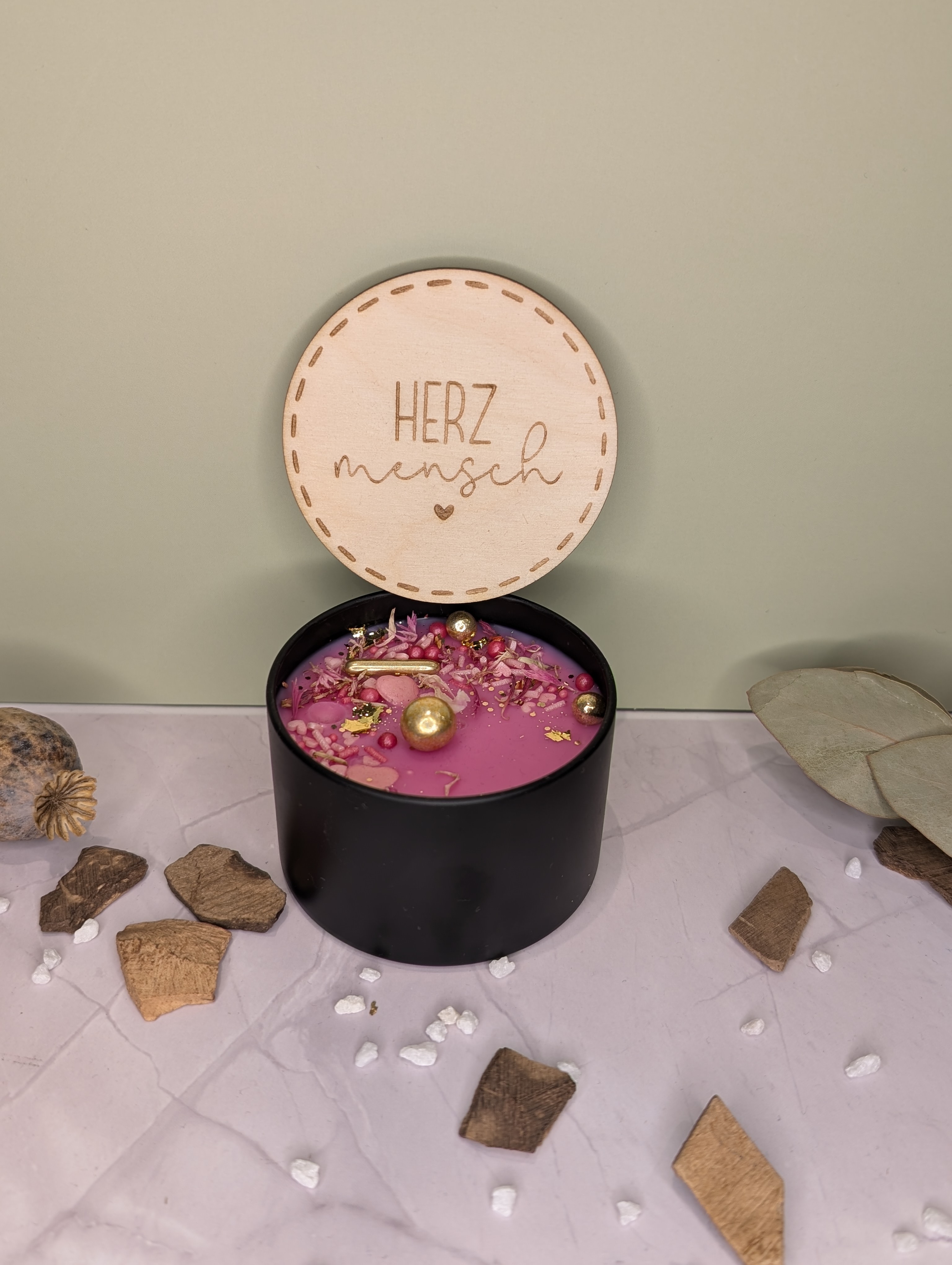 Ich arbeite mit hochwertigem Sojawachs und fertige jede Kerze von Hand. Viele meiner Kerzen werden mit dekorativen Holzelementen oder personalisierten Aufsätzen ergänzt, wodurch jede Kerze zu einem echten Blickfang wird.
